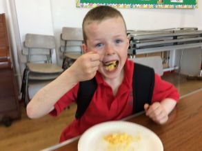 We had great fun using eggs at ECO Club. We made delicious scrambled eggs and we used the shells to make cress heads.